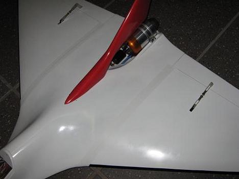 Hier zwei Bilder vom neuen Pterodactyl mit der neuen Kolibri. Das "Binchen" bringt ca. 55 Prozent mehr Schub als die "normale" Kolibri, bei gleicher Größe und minimal höherem Gewicht (5 Gramm vom Deckel ;-)).
