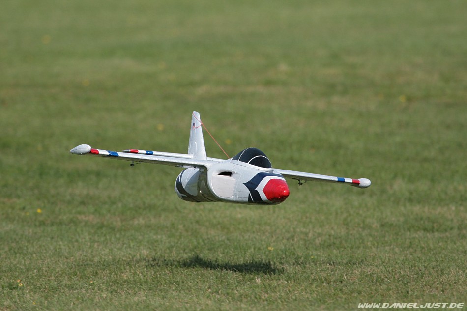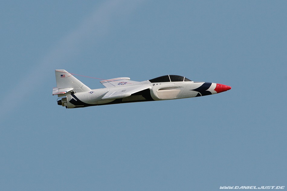 Auch der Twister ist ein Modell aus dem Hause Multiplex und besteht aus Leichtschaum. Das Äußere ähnelt einem richtigen Jet, das Flugbild ist fantastisch.Der Abgebildete Twister ist weiß lackiert und mit Dekorbögen in Anlehnung an das Farbschema der "Thunderbirds" beklebt. Das Dekor wurde speziell für den